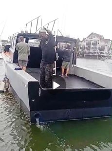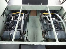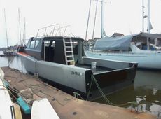Powerfull work boat that has just been launched and suitable for the transport of goods or ships crew etc.